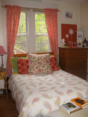 The duvet cover was a steal on sale at the Garnet Hill Factory store in Franconia, NH. It’s so light and airy, a perfect match for springtime. The pillows are a mismatch from several different stores. A few from Homegoods, L.L.Bean and Anthropologie. And the drapes are actually Ralph Lauren orange paisley sheets that my mom cut up and sewed into curtains. So cute. I’ve had them since college and my love for them is just as strong as ever. So that’s my bedding in a nut shell. I’ll try to remember to post pictures when I change it up again.